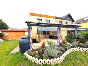 Ein weiteres Highlight ist der Außenbereich. Der schön gestaltete Garten ist eine kleine Wohlfühloase und lädt zu entspannten Stunden im Grünen ein. Zwei überdachte Terrassen erweitern den Wohnraum ins Freie und bieten zu jeder Jahreszeit geschützte Plätze zum Verweilen. Zusätzlich steht eine Fertiggarage mit praktischem Werkstattraum zur Verfügung – perfekt für Hobbyhandwerker oder zusätzlichen Stauraum. Das Haus ist voll unterkellert und bietet hier weitere Nutzfläche, unter anderem mit Waschraum und Heizungsraum.